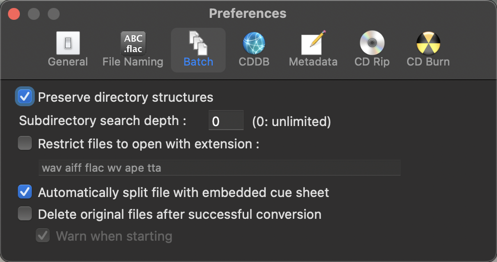 - Optionally, check the Automatically split file with embedded cue sheet box. Single-track rips are beyond the scope of this article, as unsplit lossless albums are not considered perfect.